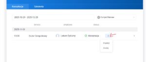4. W panelu klienta kliknij w „ołówek” i wybierz „Przełóż” lub „Anuluj” wizytę: